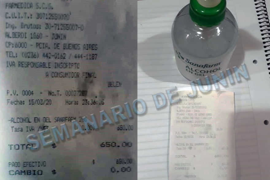 Los vecinos se quejan de esta situación. El caso más resonante se dio en una farmacia ubicada en Alberdi 1860, próxima a un centro asistencial privado importante de la ciudad. Allí, según la factura que acercó un lector a SEMANARIO, cobraron $ 650 por un frasco de 250 ml de alcohol en gel. Un verdadero disparate.