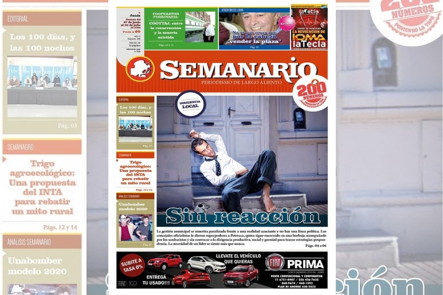 Además, Los 100 días, las 100 noches (EDITORIAL); COOTTAJ, entre la resurrección y la muerte asistida; El Reino de Alexia; Concejales, quédense en casa; Trigo agroecológico: Una propuesta del INTA para rebatir un mito rural; Unabomber modelo 2020; La pesca espera cambio de fase... y mucho más periodismo de largo aliento.