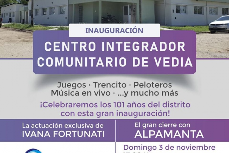 Este domingo 3 de noviembre se celebrarán los 101 años del distrito de L.N. Alem en las instalaciones del nuevo Centro Integrador Comunitario de Vedia (Mendoza y Cte. Escribano).