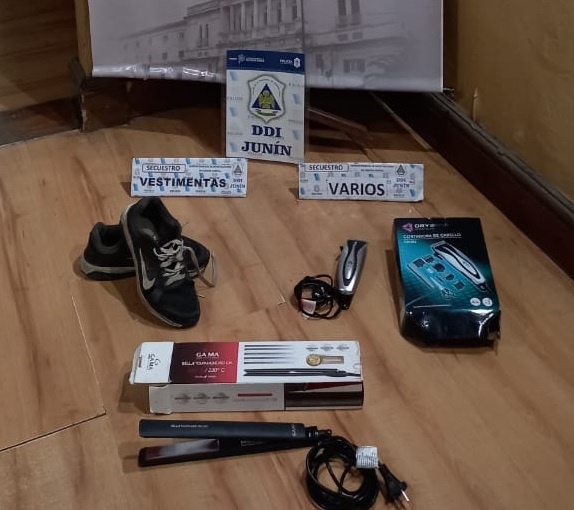 La DDI Junín logró el esclarecimiento de un robo tras dos allanamientos, con la aprehensión de dos sujetos en una causa en la que interviene el doctor Javier Ochoaizpuro, lográndose el secuestro de una plancha de pelo, una máquina de cortar pelo y un par de zapatillas.