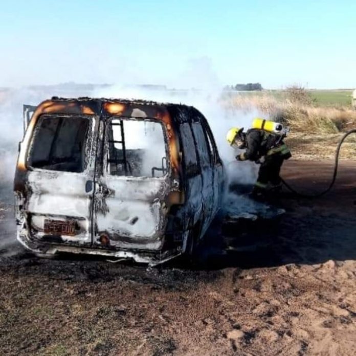 Al llegar al lugar encontraron un utilitario envuelto en llamas por lo cual se procedió a combatir el fuego. Lamentablemente, la destrucción del vehículo fue total.
