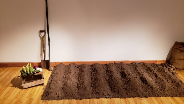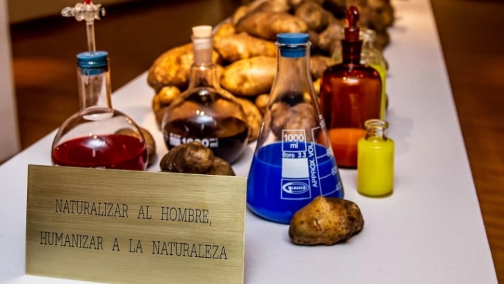 Así, el Museo MACA exhibe hasta la última semana de noviembre dos grandes instalaciones que fueron reconstruidas con autorización de la familia de Grippo, una serie de fotos de su taller, realizadas por el fotógrafo suizo Gian Paolo Minelli y un video realizado especialmente por la UNNOBA. El amplio espacio de la planta baja se encuentra ocupado por Naturalizar al hombre, humanizar la naturaleza de 1977, llamada también Energía vegetal, que consiste en una gran mesa colmada de papas y recipientes de laboratorio, que refiere a la energía y a la transformación de la materia. La presencia dominante de la mesa, central en la obra de Grippo, y las referencias a la experimentación se imponen aquí en una rotunda aproximación del arte y la ciencia a lo sagrado.