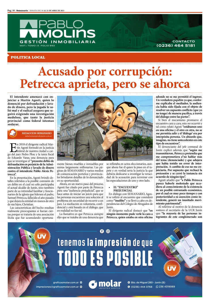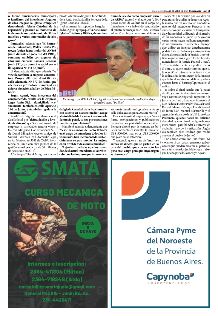 NOTA PUBLICADA EN LA EDICION IMPRESA Y DIGITAL Nº 353 DE SEMANARIO DE JUNÍN. SÁBADO 15 DE ABRIL DE 2023
