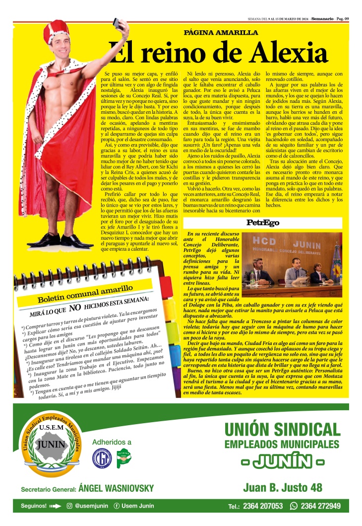 PÁGINA DE HUMOR PUBLICADA EN LA EDICIÓN IMPRESA Y EDICIÓN DIGITAL Nº 400 DE SEMANARIO DE JUNÍN. SEMANA CORRESPONDIENTE DEL 9 AL 15 DE MARZO DE 2024.