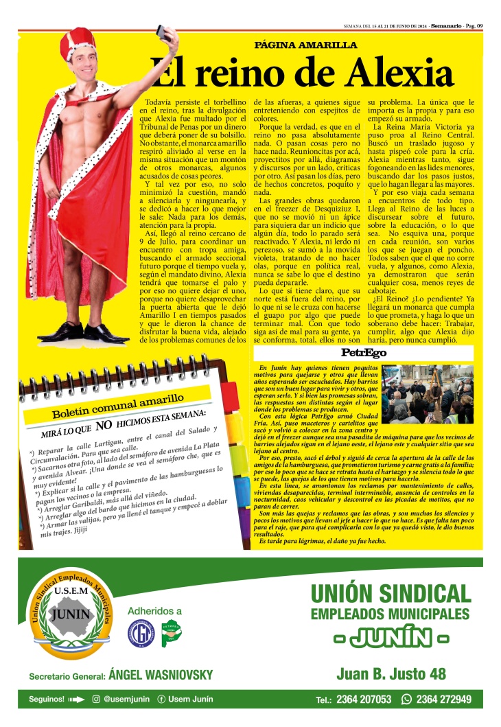 PÁGINA DE HUMOR PUBLICADA EN LA EDICIÓN IMPRESA Y EDICIÓN DIGITAL Nº 414 DE SEMANARIO DE JUNÍN. CORRESPONDE A LA SEMANA DEL 15 AL 21 DE JUNIO DE 2024