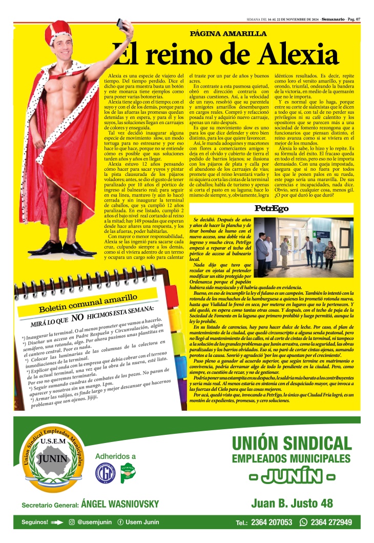 PÁGINA DE HUMOR POLÍTICO PUBLICADA EN LA EDICIÓN IMPRESA Y EDICIÓN DIGITAL Nº 436 DE SEMANARIO DE JUNIN. SEMANA DEL 16 AL 22 DE NOVIEMBRE DE 2024