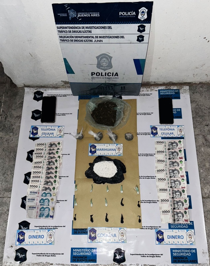 Como resultado del operativo se secuestró piedra de clorhidrato de cocaína de máxima pureza, varios envoltorios con cocaína preparada y lista para su comercio al menudeo, varios envoltorios de Marihuana, telefonía celular, dinero en efectivo, recortes de nylon varios y demás elementos de interés para la prosecución de la causa.