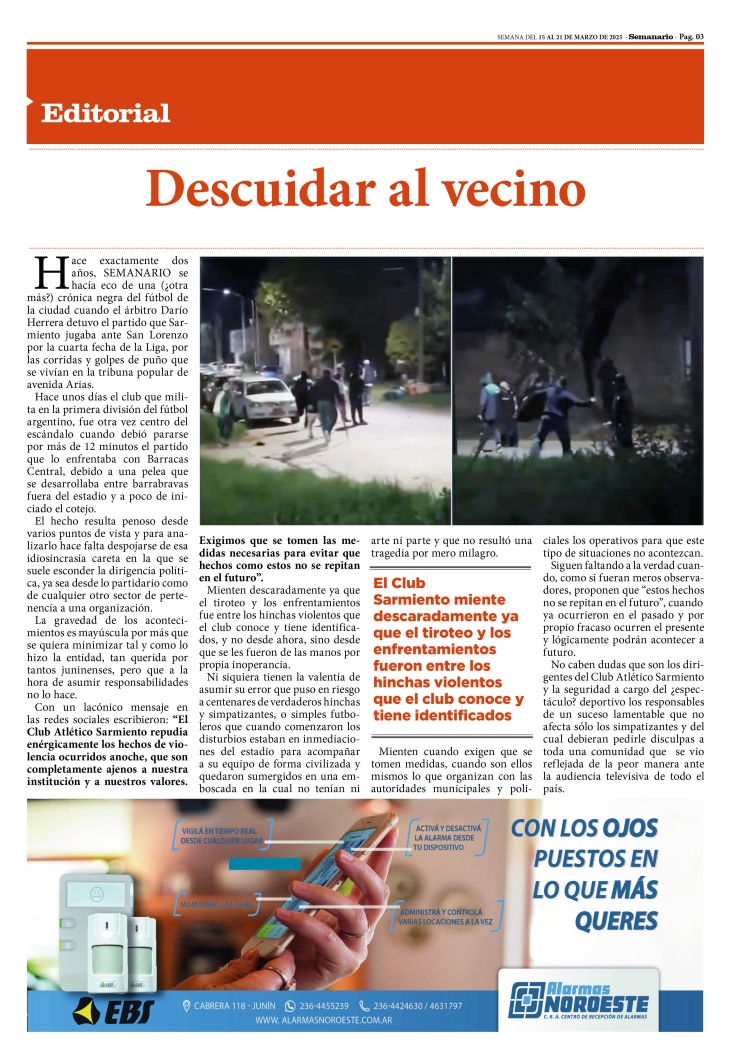 EDITORIAL PUBLICADO EN LA EDICIÓN IMPRESA Y EDICIÓN DIGITAL Nº 453 DE SEMANARIO DE JUNÍN. SEMANA DEL 15 AL 21 DE MARZO DE 2025