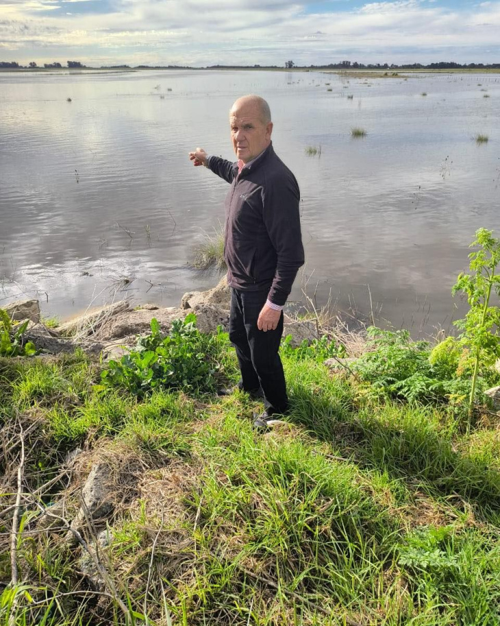 "Mientras Milei nos endeuda con el FMI y el tesoro de EEUU, los provincianos nos inundamos", sentenció Zurro, quien dio muestra del estado de situación colgado de la baranda de un puente.