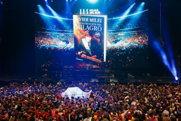 El presidente Javier Milei presentó este lunes su nuevo libro con un show de rock en el Movistar Arena y le pidió a sus seguidores que “no aflojen” porque, dijo, “hay que terminar de pasar el río”, en la recta final para las elecciones legislativas del 26 de octubre.