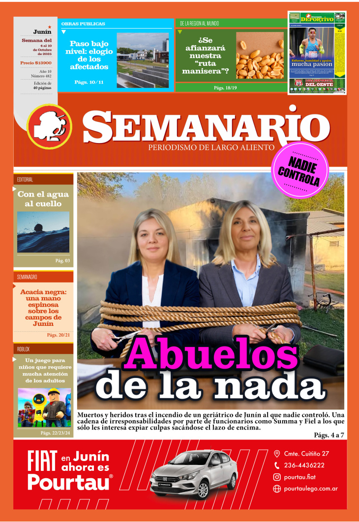 NOTA DE TAPA PUBLICADA EN LA EDICIÓN IMPRESA Y EDICIÓN DIGITAL Nº 482 DE SEMANARIO DE JUNÍN. SEMANA DEL 4 AL 10 DE OCTUBRE DE 2025