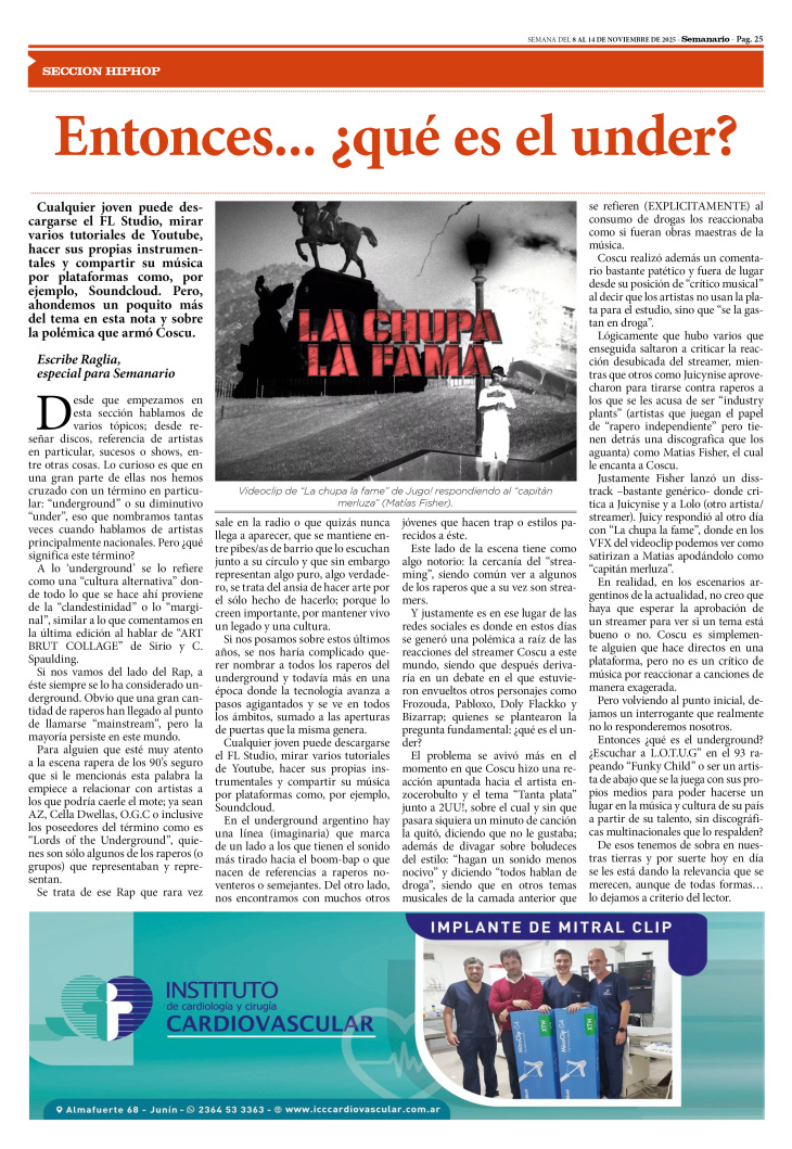 SECCIÓN HIPHOP PUBLICADA EN LA EDICIÓN IMPRESA Y EDICIÓN DIGITAL Nº 487 DE SEMANARIO DE JUNÍN. SEMANA DEL 8 AL 14 DE NOVIEMBRE DE 2025