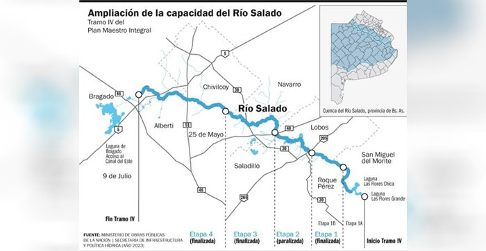 El Plan Maestro del Río Salado, que debía terminarse en 2015, sigue en ejecución y aún falta completar tramos clave: unos 30 km a cargo de Nación y 90 km de la Provincia