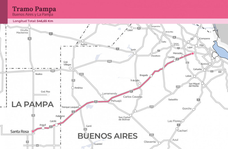 El denominado Tramo Pampa es de 547 km sobre la ruta nacional 5, entre las ciudades de Luján y Santa Rosa, La Pampa. Allí beneficiará, entre otras, a Chivilcoy, Alberti, Bragado, 9 de Julio, Carlos Casares, Pehuajó, Trenque Lauquen y Pellegrini.
