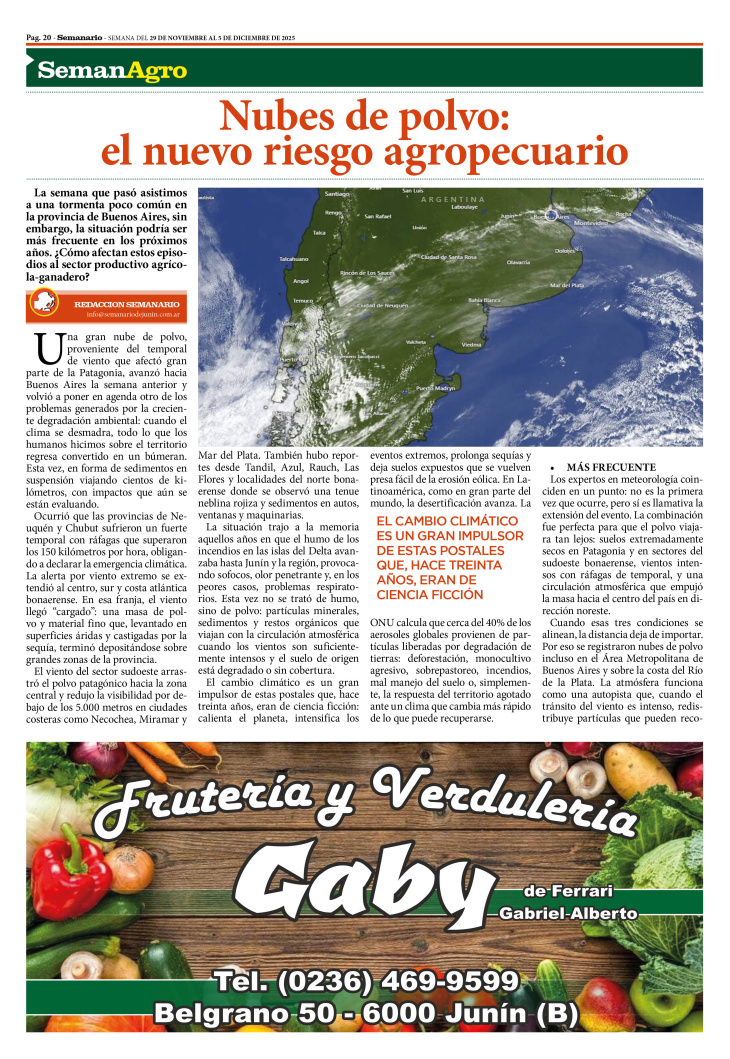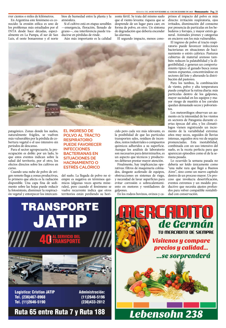 SECCIÓN SEMANAGRO PUBLICADA EN LA EDICIÓN IMPRESA Y EDICIÓN DIGITAL Nº 490 DE SEMANARIO DE JUNÍN. SEMANA DEL 29 DE NOVIEMBRE AL 5 DE DICIEMBRE DE 2025.