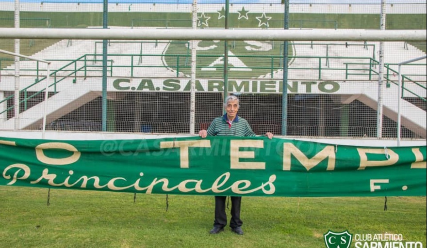 "Se ha logrado rescatar una “reliquia histórica” -publicó en el Facebook Oficial de Sarmiento Ítalo Marone- Se trata de una bandera de medidas amplias, más de 20 metros de largo y 70 cm de ancho, que quizás no resulte la de mayor tamaño que existe, pero su mérito debe ser seguramente que es la más antigua o integra el podio de las más antiguas. Confeccionada en 1952, cuando Sarmiento ingresó al profesionalismo, con el aporte de los empleados de las ex Oficinas Generales del Ferrocarril San Martín".