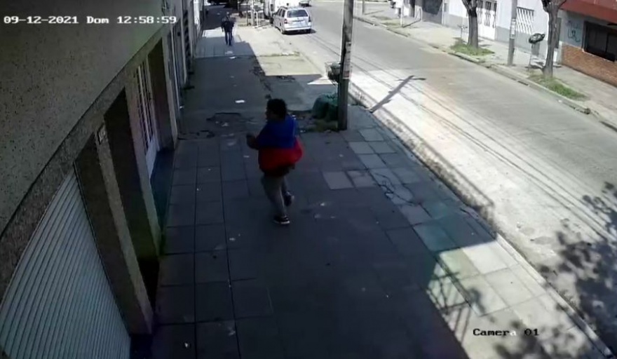 La situación quedó registrada en una cámara de seguridad privada de la zona, en la que se ve al asaltante correr, sorprender al peatón y apuntarle con un arma.