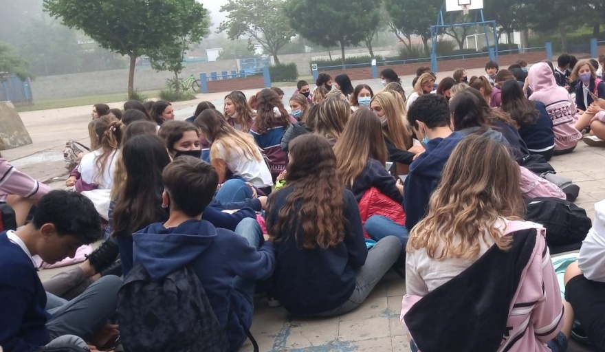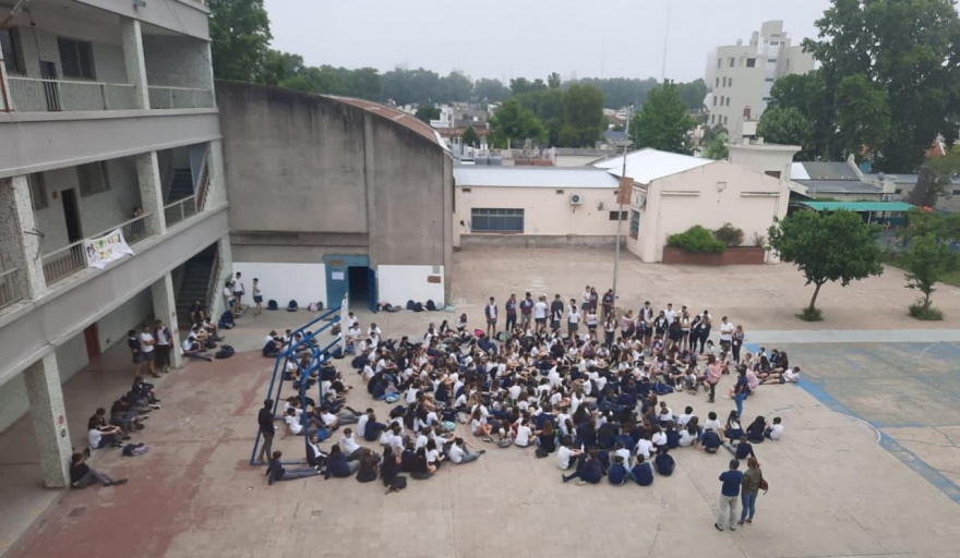 Los estudiantes estallaron: no sólo están haciendo una sentada en el patio de la escuela, sino que a modo de protesta muchos varones lucen polleras y las chicas, bermudas.