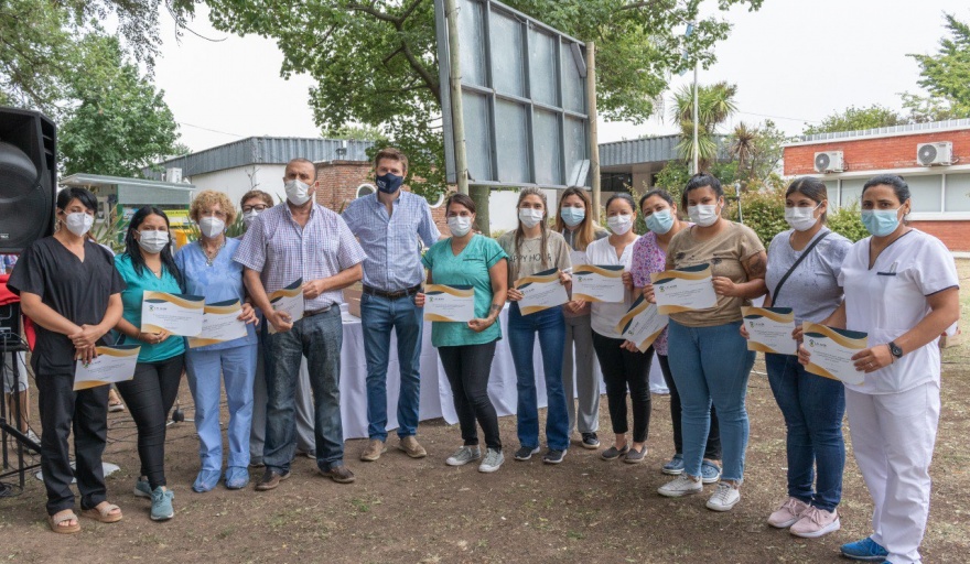 En un acto desarrollado en horas de la mañana frente al Hospital municipal del distrito de Leandro N. Alem, el intendente municipal Carlos Ferraris en nombre de la gestión que encabeza, reconoció la labor incansable de todo el personal de salud del distrito en momentos sumamente difíciles de pandemia. Estuvo acompañado por el jefe de Personal Daniel Picca, el contador Maximiliano Marturano, el director de Deportes Martín Peacan, el director de Servicios Urbanos, Gabriel Zulueta, los concejales por el Frente de Todos Omar Pagella y Ricardo Luis, delegados municipales y demás funcionarios.