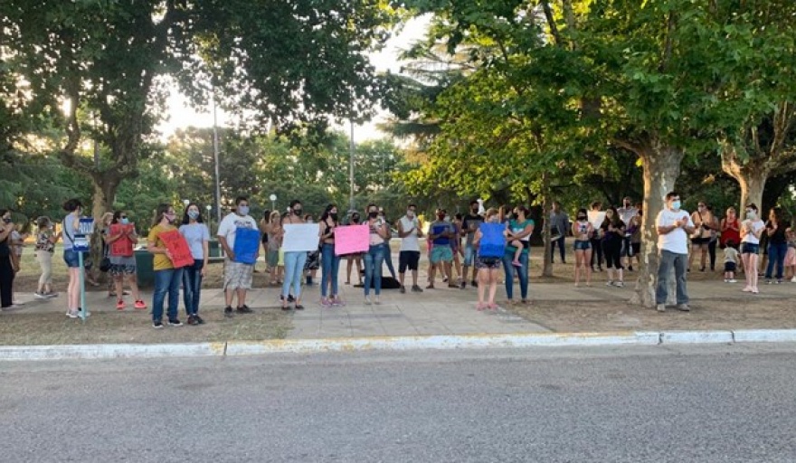 El punto de concentración fue el Recreo Molina Campos. Desde allí partió a una columna de personas, quienes se movilizaron a pie por la Avenida O´Brien hasta la plaza principal mientras aplaudían y hacían sonar distintos tambores, informó Bragado TV.