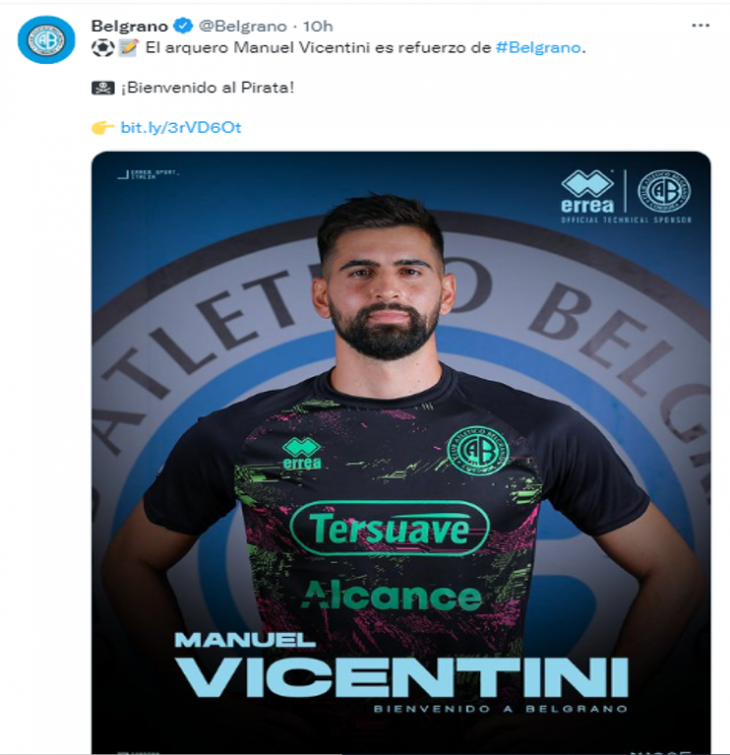 Este viernes, Belgrano de Córdoba oficializó la llegada de Manuel Vicentini. El ex arquero de Sarmiento tuvo una salida abrupta del Verde por diferencias con la dirigencia y el entrenador Israel Damonte y dejó la concentración en la previa del partido debut del equipo, ante Atlético Tucumán. Mientras tanto, en su lugar llegaría Josué Ayala a competir con Acosta por la titularidad del arco del Verde. Central informó en sus redes sociales que el arquero 'rescindió de común acuerdo' con el club, con lo que se allanaría su llegada a Junín.