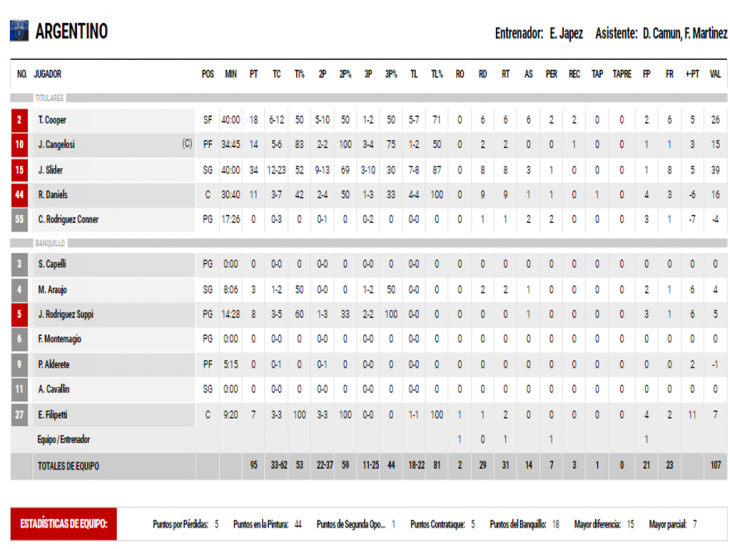 Con garra Turca y un tremendo partido de Jony Slider, Argentino dejó atrás el mal trago ante la Unión y metió un triunfazo 95-90 ante Regatas en Corrientes, en su segundo juego como visitante. El goleador y jugador de la noche fue Slider con 34 puntos, 8 rebotes y 3 asistencias; Cooper anotó 18, Juanchi Cangelosi 14 y Daniels, 11. En el local, Gary Mc. Ghee anotó 22 puntos.