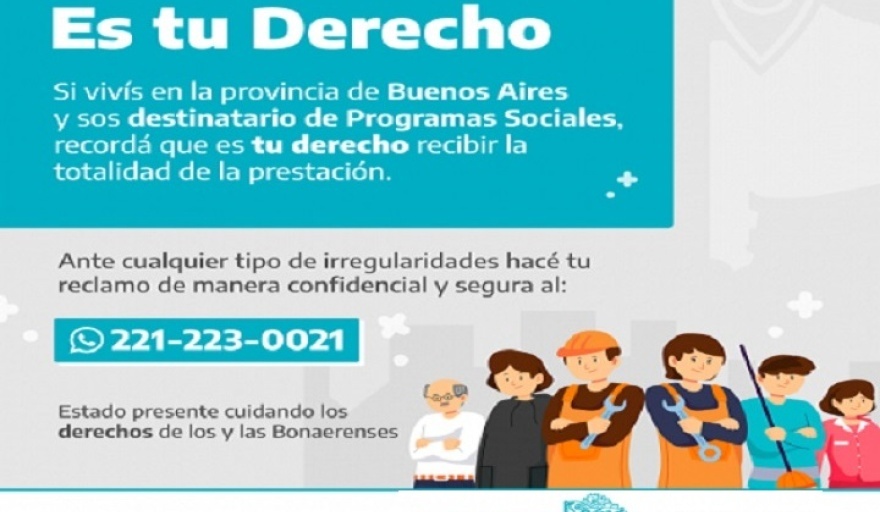 El Ministerio de Desarrollo de la Comunidad lanzó la línea telefónica 0221 223-0021 para que los inscriptos a programas sociales que viven en la provincia de Buenos Aires puedan realizar reclamos de manera confidencial y segura ante algún tipo de irregularidad detectada.