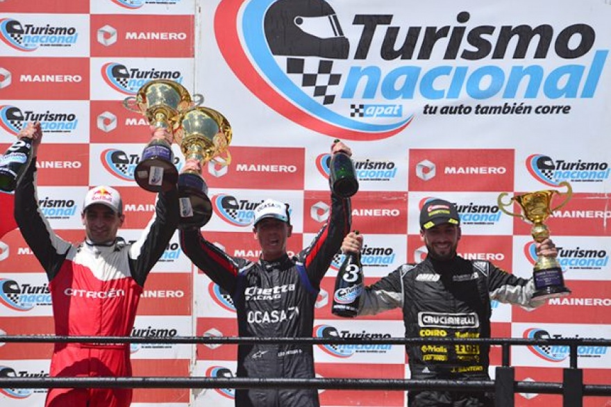 Juan Pablo Pastori llegó al final como líder y ganó su primer carrera en la categoría con el Toyota Etios del JCB Motorsport.El misionero sacó rédito del roce entre Ortega y Bucci y logró su primera victoria en la Clase 2 del TN luego de una áspera carrera en el circuito internacional de Potrero de los Funes. Menvielle y Bucci completaron el podio.