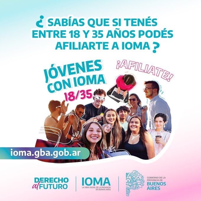 "A su vez, gracias a los convenios con otras obras sociales del país, si vas a otra provincia o permanecés en ella en forma temporaria (por ejemplo, vacaciones), podrás continuar con la cobertura de IOMA. Consultas: 0221 – 429-5974 / 952 Mail: jovenesconioma@ioma.gba.gov.ar / voluntarios@ioma.gba.gov.ar" completaron en la comunicación que dirigieron al público entre 18 y 35 años, que ahora puede sumarse a tener cobertura con esta nueva modalidad.
