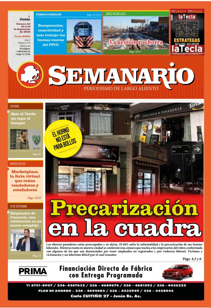 NOTA DE TAPA DE LA EDICIÓN IMPRESA Y EDICIÓN DIGITAL Nº 376 DE SEMANARIO DE JUNÍN. CORRESPONDE A LA SEMANA DEL 23 AL 29 DE SEPTIEMBRE DE 2023.