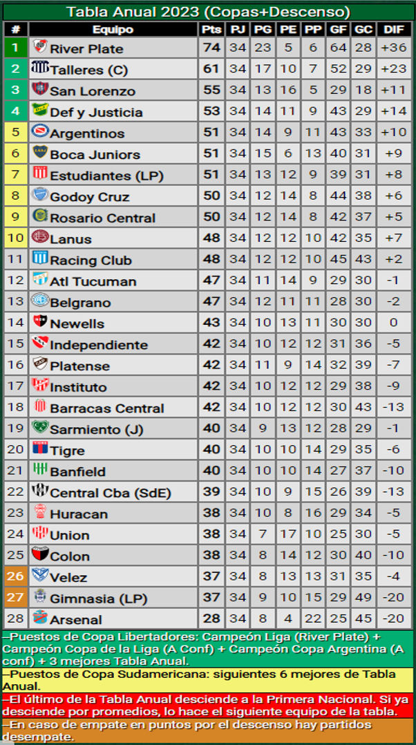 El que sí festejó en el clásico fue Independiente, que le ganó 2-0 a Racing en el Cilindro y llegó a 42 puntos, para ubicarse en el puesto 15 de la tabla anual, a 5 del 27 que estaría bajando a la segunda categoría.