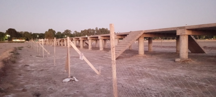 Totalmente seco los costados del espigón y todo el ancho donde estaba la "Laguna"