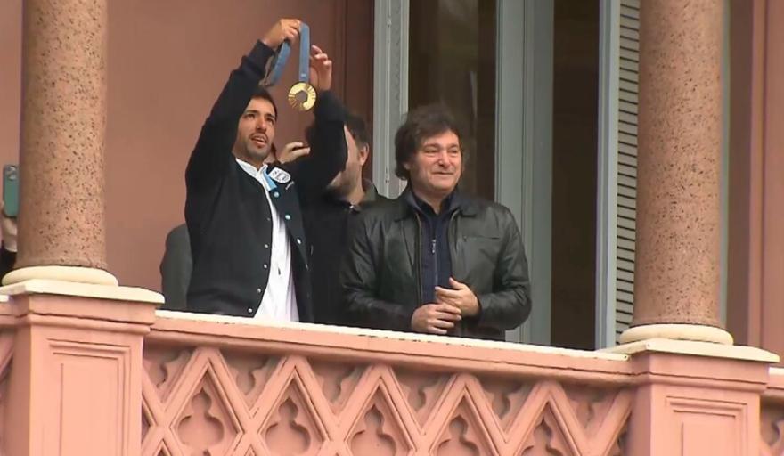 "Estoy muy contento por esto, cambié todos los planes para venir. Voy a saludarlo y agradecerle por la invitación. Es un placer ser recibido por el Presidente. Nos sorprendió", agregó sobre Milei, quien por su parte dijo en el balcón: "Tiene vergüenza. Pero tenemos a un crack". Como escena final se los pudo ver a los dos mostrando la medalla de oro en el balcón, recibiendo el reconocimiento de todos los presentes.