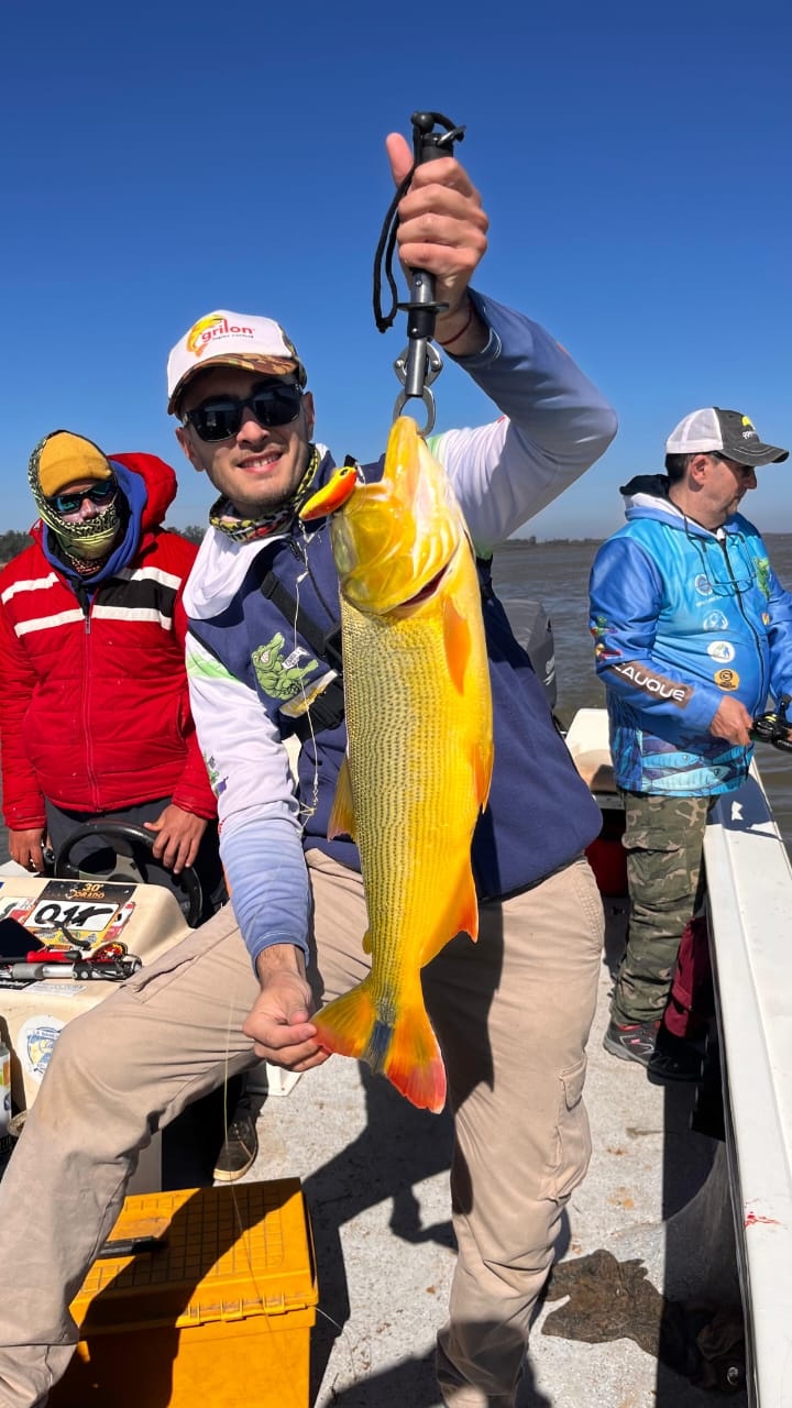 Comenzamos a castear en correderas muy pegadas a la Zona e inmediatamente comenzamos a tener resultados, la altura del rio al llegar era de 6,20 metros. Empezamos con señuelos paleta 1, algunos con paleta 2 los cuales tuvieron mejores resultados, salvo Enzo que uso un Saar de señuelos Rubí, el cual no lo cambio en toda la primera jornada, todos menos el terminamos pescando con paleta 2 .