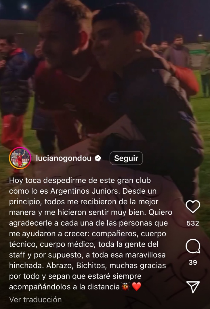 -La despedida de Gondou en sus redes sociales-