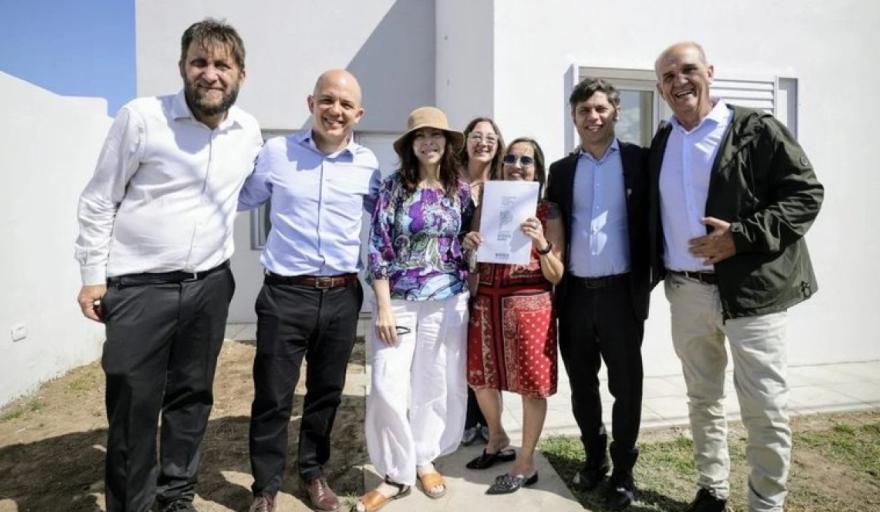 El gobernador de la provincia de Buenos Aires, Axel Kicillof, entregó este miércoles 60 viviendas a familias del municipio de Pehuajó, junto a la ministra de Hábitat y Desarrollo Urbano, Silvina Batakis, y el intendente local, Pablo Zurro.