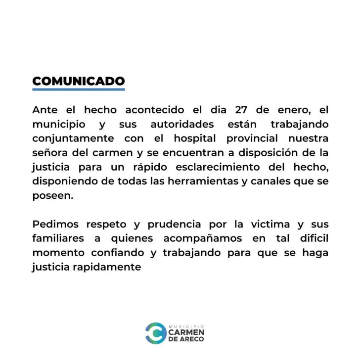 El Director Ejecutivo del Hospital, Fernando Romero, se refirió a lo ocurrido y explicó los pasos seguidos según los protocolos técnico-legales, detallando los mecanismos de intervención implementados tanto por la institución como por las autoridades municipales y provinciales. No obstante no brindó detalles del hecho denunciado para no interferir en la labor de los investigadores.