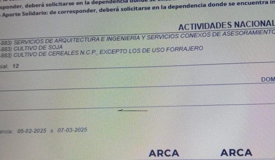 Sin embargo, justo en el mes de noviembre pasado, cuando se conoció el decreto municipal y según consta en los registros de la hoy ARCA, se inscribió con dos actividades secundarias: tales como “Cultivo de soja” y “Cultivo de Cereales N.C.P. excepto los de uso forrajero” con las cuales pasaría a facturar el triple de lo que venía haciendo.