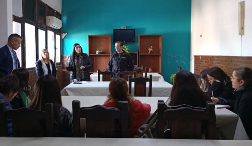Previo a la recorrida, la jefa del G.A.Y.S Paola Covachina, la Asistente Social Karina Ventura y el jefe del Departamento técnico Criminólogico Diego Zuccarro Bornic, les brindaron una charla para ponerlas al tanto del funcionamiento de cada una de las secciones y poner a disposición la experiencia de cada uno de los funcionarios de la unidad.