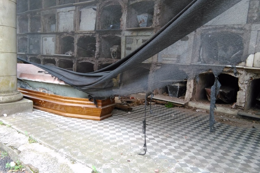 Desde Unidad Ciudadana denuncian que no se cumplen con las reglas de seguridad correspondiente para quienes transitan allí. “Las paredes y techos se encuentran en peligro de derrumbe, hay montículos de escombros, ataúdes abandonados. También se incumple con los propósitos de respeto y cuidado por los restos depositados allí”, afirma el proyecto presentado por el bloque integrado por Rodolfo Bertone, Victoria Muffarotto, José Bruzzone y Olga Prieto.