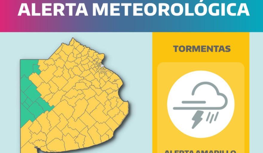 El Servicio Meteorológico Nacional emitió un alerta amarilla por tormentas para este sábado 11. Se espera que estén acompañadas por abundante caída de agua en cortos períodos, frecuente actividad eléctrica, ocasional caída de granizo y ráfagas que podrían superar los 60 km/h.