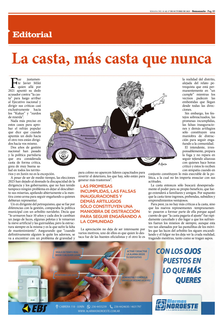 EDITORIAL PUBLICADO EN LA EDICIÓN IMPRESA Y EDICIÓN DIGITAL Nº 483 DE SEMANARIO DE JUNÍN. SEMANA DEL 11 AL 17 DE OCTUBRE DE 2025