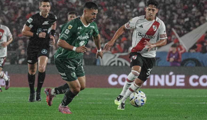 El Verde intentó copar la parada con una presión alta ni bien Zunino marcó el arranque, pero River se acomodó en el medio y empezó a manejar el trámite del partido, tuvo la pelota pero su falta de claridad y el correcto cerrojo defensivo ideado por Sava dio resultado.
