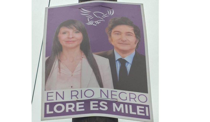Se acercan las legislativas y, mientras Villaverde continúa con la campaña en Río Negro, los carteles de LLA en la provincia advierten: “Lore es Milei”.