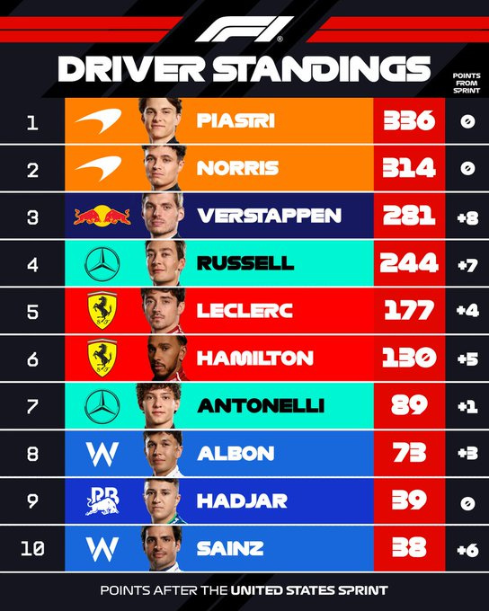 El neerlandés de Red Bull dominó las 19 vueltas y recortó notablemente las distancias en la punta del Campeonato de Pilotos de la Fórmula 1 tras el abandono de los dos McLaren, que sufrieron graves daños en un multitudinario accidente en la largada. George Russell (Mercedes) y Carlos Sainz (Williams) lo acompañaron en el podio. Franco Colapinto, que estuvo involucrado en el incidente del inicio, terminó en el 14° puesto.