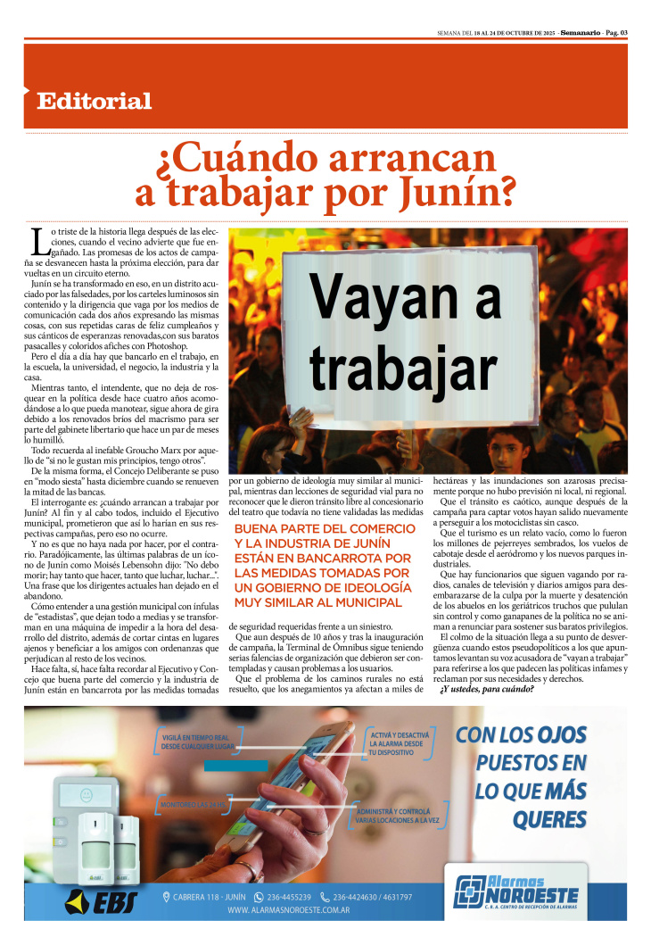 EDITORIAL PUBLICADO EN LA EDICIÓN IMPRESA Y EDICIÓN DIGITAL Nº 484 DE SEMANARIO DE JUNÍN. SEMANA DEL 18 AL 24 DE OCTUBRE DE 2025