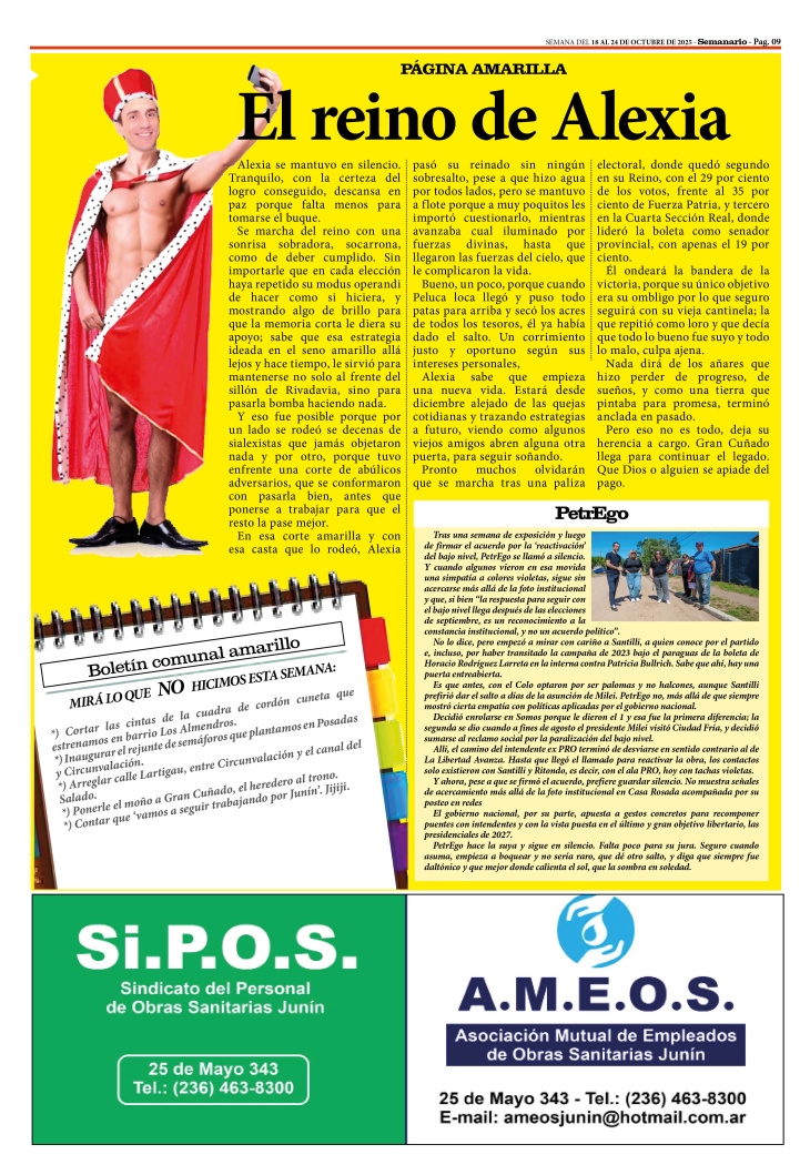 PÁGINA DE HUMOR POLÍTICO PUBLICADA EN LA EDICIÓN IMPRESA Y EDICIÓN DIGITAL Nº 484 DE SEMANARIO DE JUNÍN. SEMANA DEL 18 AL 24 DE OCTUBRE DE 2025