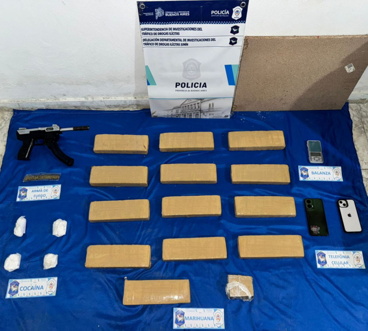 Los detenidos permanecerán en calidad de tales por el delito de Infracción al Art. 5to. de la ley 23737 (Ley Nacional de Drogas) a disposición del juzgado federal de Junín y serán trasladados en breve para prestar declaración indagatoria.
