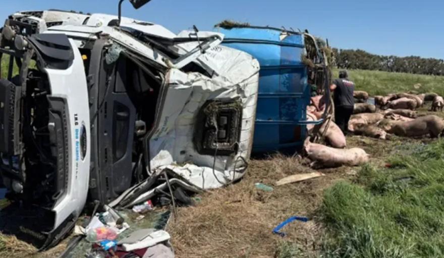 Un camión jaula que transportaba cerdos volcó el lunes al mediodía sobre el kilómetro 179 de la Ruta Nacional 7, a la altura de Ingeniero Silveyra, en el partido bonaerense de Chacabuco. El accidente provocó la dispersión de los animales por la zona y la posterior llegada de decenas de personas que se llevaron parte de la carga, sin importar si los cerdos estaban vivos o muertos.