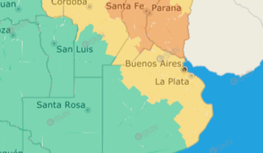 El fenómeno climático que se extiende por la zona central del país también será severo en la zona céntrica de Santa Fe, Entre Ríos con tormentas fuertes o severas y la posibilidad de caída de granizo. Se esperan ráfagas de viento de alrededor de 100 km/h y los acumulados de agua se estiman entre los 70–100 mm (más puntualmente)